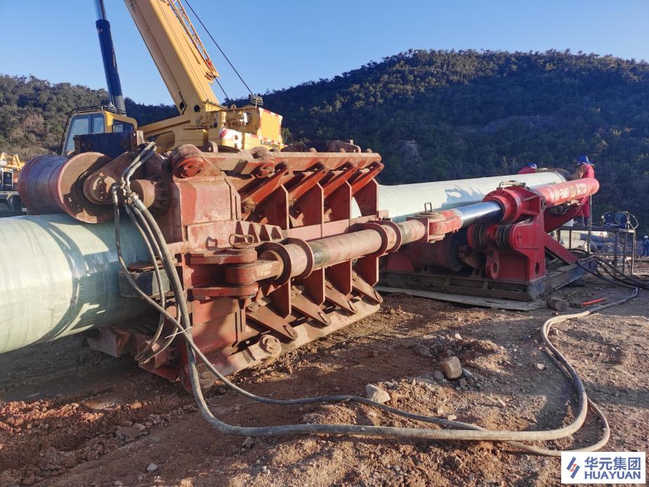 During the pull-back period, a 500-ton pipe jacking machine was installed at the exit side to assist with the process and ensure successful pull-back in one attempt. At 10:45 a.m. on December 20, under the traction of an HY-6000(D) electric drilling machine at the entry side, the first prefabricated pipe with UV-curing coating slowly entered the hole, marking the beginning of the pull-back process.