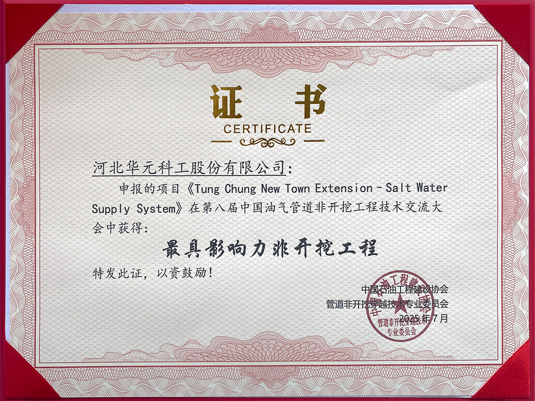 在7月10日上午举行的颁奖典礼上,k8凯发(中国)天生赢家·一触即发 凭借其在“香港东涌项目定向钻穿越项目”中的卓越表现,荣获了2024-2025年度“最具影响力非开挖工程”奖。k8凯发执行总经理王晓冰代表k8凯发上台领奖。此奖项是由中国石油工程建设协会、管道非开挖穿越技术专业委员会在数家申报单位中评选产生。这一奖项不仅是对k8凯发在复杂地质条件下攻克施工难题能力的高度认可,更是对其在非开挖工程领域持续创新与突破的充分肯定。