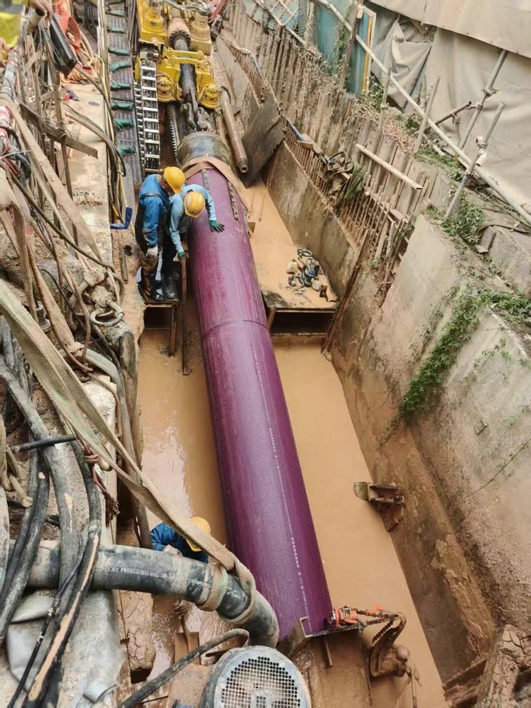 2024年6月,原施工单位进行HDPE管回拖中穿越岩石层时遭遇“死亡卡钻”,该单位的定向钻打捞筒与底部钻具组合(BHA)达到穿越曲线最低点时被地质“虎钳”死死咬住,即便采用40吨~50吨的拉力仍纹丝不动。更致命的是,在后续洗孔作业中,钻杆突发性断裂,致使钻头和一段BHA断落在孔内,使工程关键路径进入高危停滞状态。